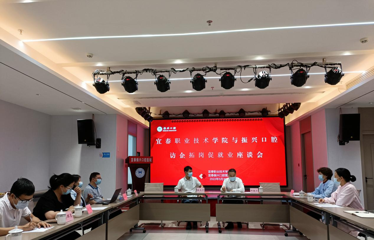 为深入贯彻落实党中央、国务院关于高校毕业生就业工作的决策部署,有力促进买球官网毕业生更加充分、更高质量就业。近日,护理学院院长熊杰平、实习就业处副处长袁剑峰,护理学院副院长易国萍、党总支副书记王玮、实习就业科科长李辉员一行5人前往宜春振兴口腔医院开展访企拓岗促就业专项行动。振兴口腔医院院长邱振兴、副院长苏兰萍、总护士长刘国玲出席会议。