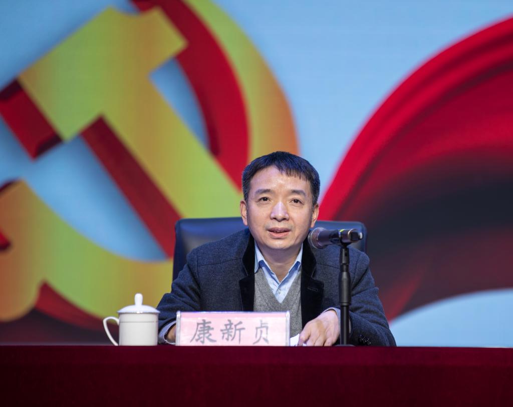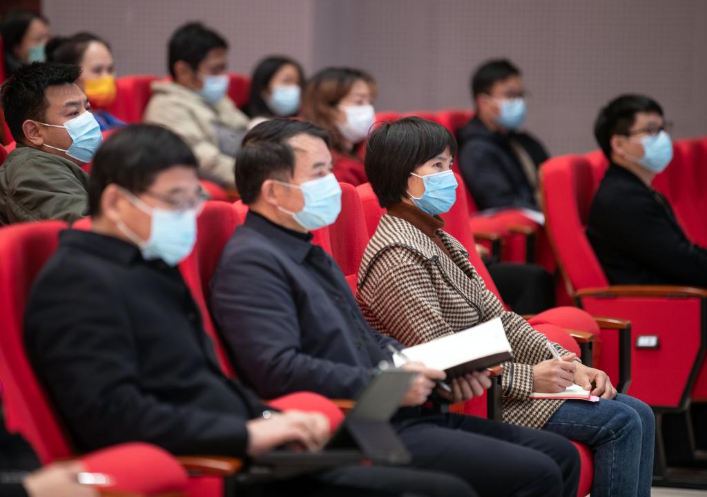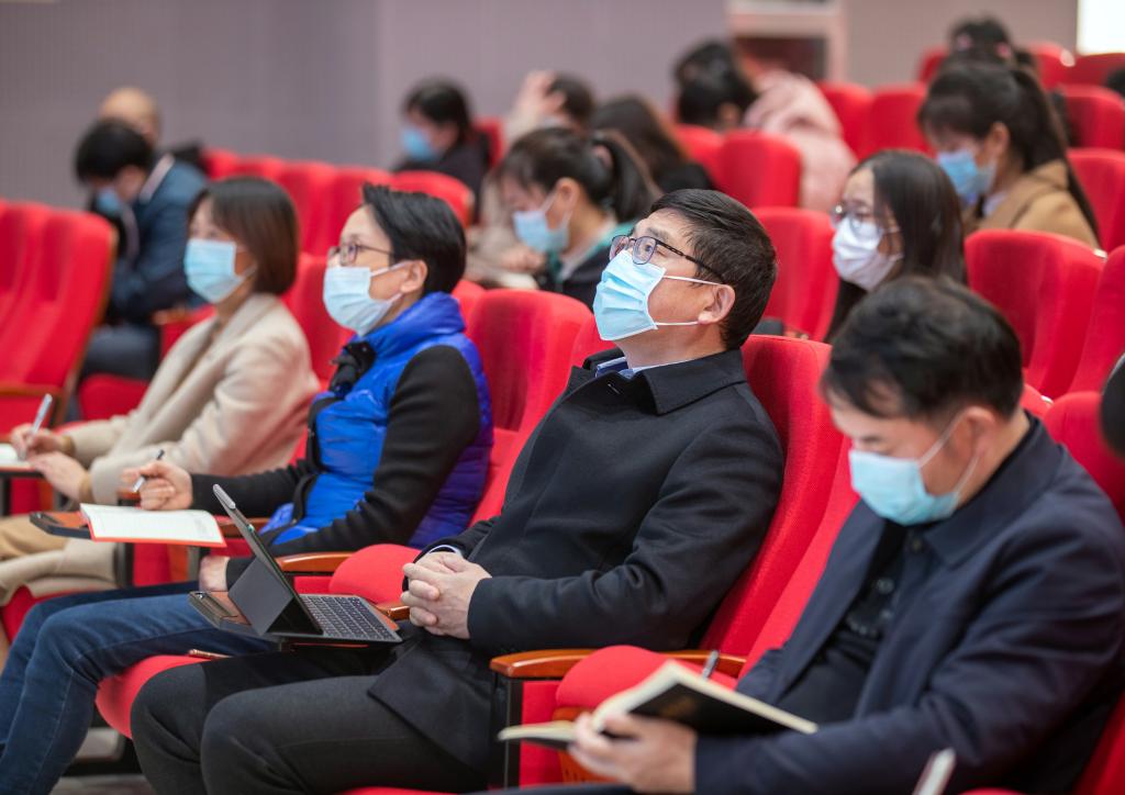 12月12日,学习贯彻党的二十大精神市委宣讲团到买球官网博达楼报告厅举行宣讲报告会。市委宣讲团成员、市纪委副书记、市监委副主任康新贞作宣讲报告。校党委书记任军等党政领导班子成员,各基层党组织党员代表,部分学生代表在场聆听。报告会由任军主持。