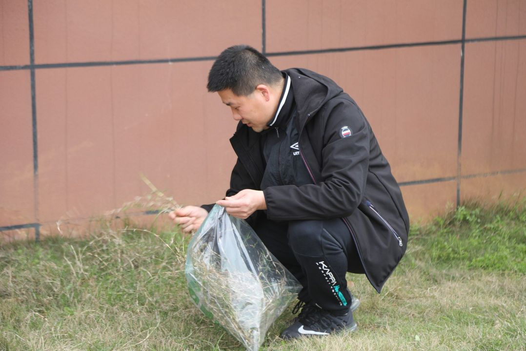 当日下午,气温微升,师生们来到各自责任划分区,有的用双手,有的用铲子、夹子、扫把等劳动用具如火如荼地投入到校园环境卫生整治工作中。他们有的蹲着,有的弯着腰,有的卷起袖子和裤脚,在草坪内拔杂草、捡石块、除垃圾。尽管双手、裤子、鞋子都被沾上草渍、泥巴,大家的劳动热情始终高昂。不到一小时,师生们额上便布满了细密的汗珠,杂物被一一清除。经过一番奋战,原本杂乱的草坪变得干净而整洁。师生们在火热的氛围中,对劳动有了新的体验和感悟。