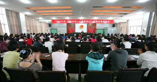本站讯(党委宣传部 吴霞) “刘书记的党史课太精彩了,语言生动、深入浅出,让我深刻理解了为什么说没有共产党就没有新中国,同时也更加热爱我们的党,作为新时代的大学生,我会以此为契机,加倍努力、发奋学习,为中华民族的伟大复兴贡献自己的微薄之力。”外语系2010级大英教(1)班的阳启平同学告诉记者。4月21日上午,党委书记、院长刘密走进“形势与政策”课堂,在学术报告厅与我院260名师生一道回顾中国共产党九十年的光辉历程,共话青年成长。