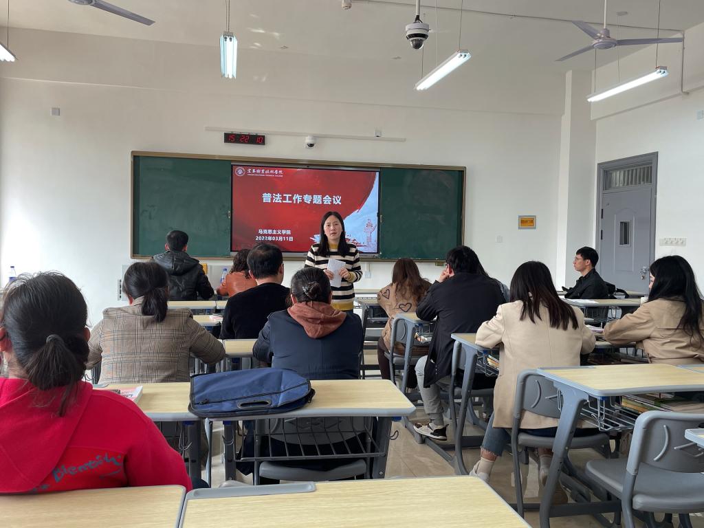 会议有两项议题,一是意识形态工作;二是普法工作。彭慧洁传达了学校关于加强意识形态工作的相关要求,同时结合我院理论学习情况和思修课建设实际提出了新要求。她指出,思政课教师要将意识形态工作有机融入到教学全过程,旗帜鲜明地批判错误思潮,弘扬主旋律,传播正能量,要敢于和善于回应学生提出的理论问题和实践问题,深入推进习近平新时代中国特色社会主义思想进教材、进课堂、进头脑的工作。她还传达了省委省教工委关于2022年普法工作会要点,会议要求深入学习贯彻习近平法治思想,系统总结了“七五”普法成效,全面部署了“八五”普法工作。她指出,思政课教师率先掌握好习近平法治思想,高标准高质量落实好普法教育工作的相关任务。