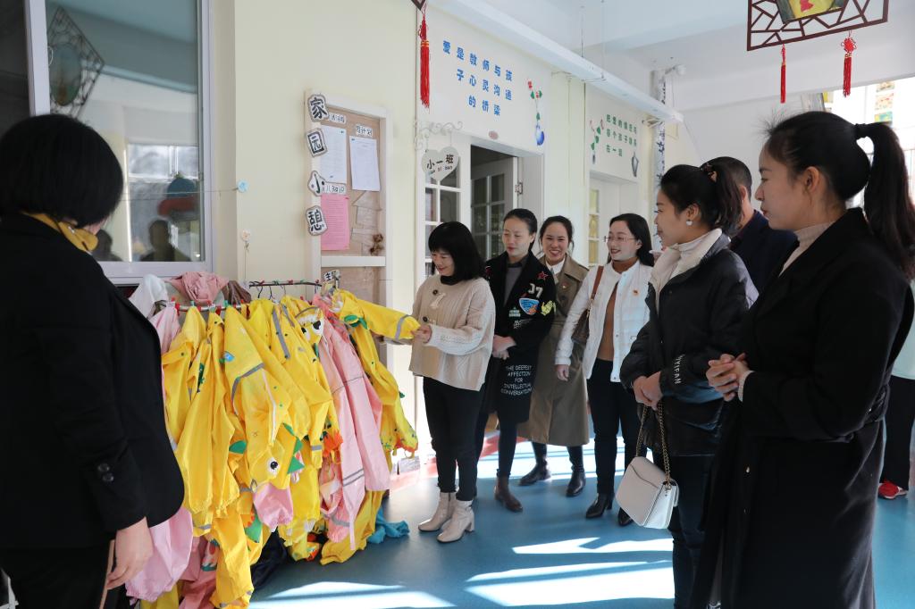 鲲鹏幼儿园园长颜美珍代表幼儿园对两所园园长、教师代表的到来表示热烈欢迎,向他们介绍了我园的办园理念及课程特色,一同观看了幼儿园宣传片,参观了幼儿园园所环境,观摩了幼儿早操展示等。