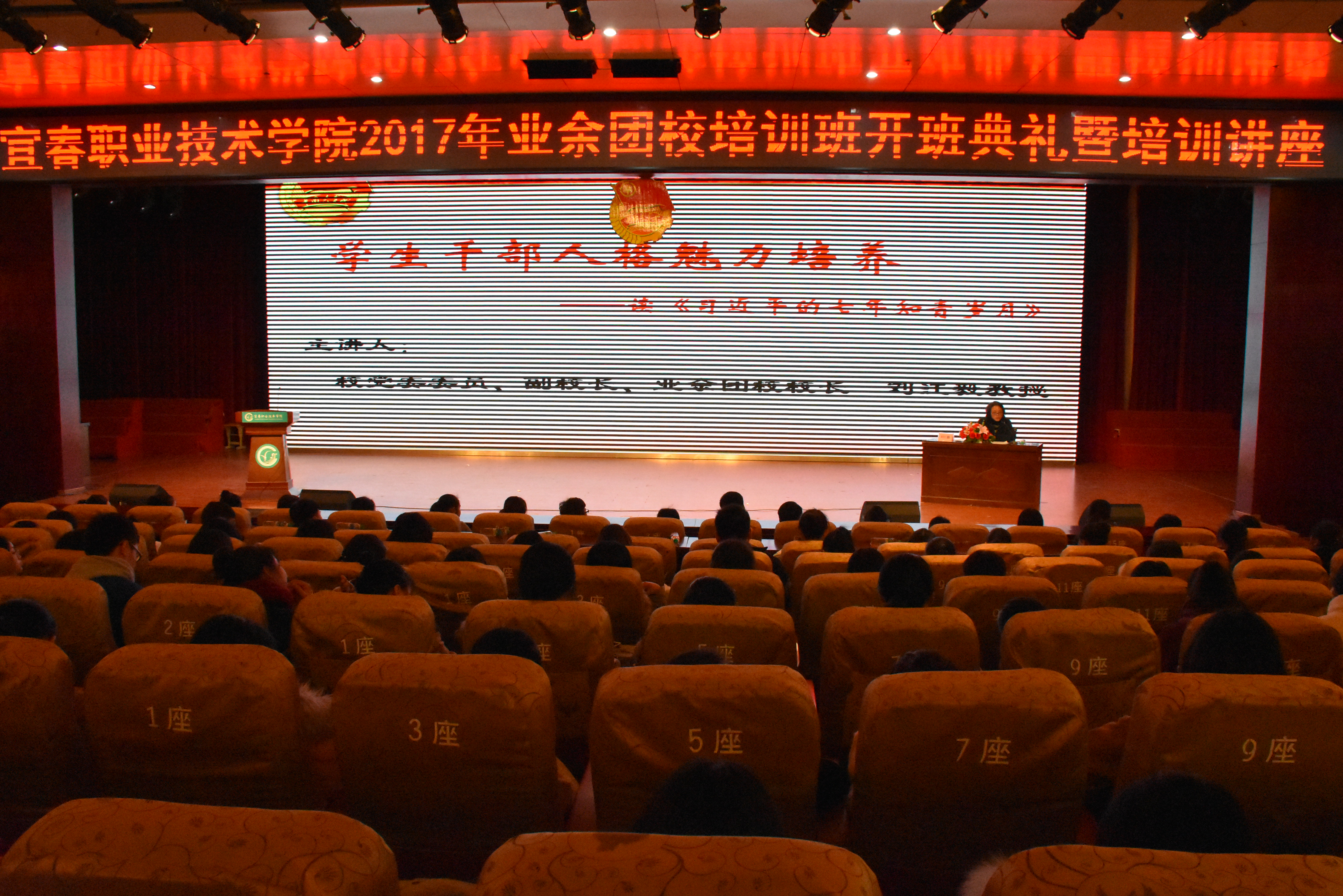校党委委员、副校长刘江毅为全体学员作了主题为“学生干部人格魅力培养”的讲座。刘校长以如何培养人格魅力为主线,分享了阅读《习近平的七年知青岁月》的感悟和体会。讲座重点突出,思路清晰,语言生动,刘校长用发人深省的真实事例和一个个鲜活生动的故事,告诉我们要做到肩有担当,学会自立自强,在成长历程中体会感悟“理想”“奋斗”“阅读”“仪式感”“感恩”“奉献”等成长发展的核心要素,勉励学员们自觉地以曾莹玲、郭斓等优秀毕业生为榜样励志勤学,健康成长。