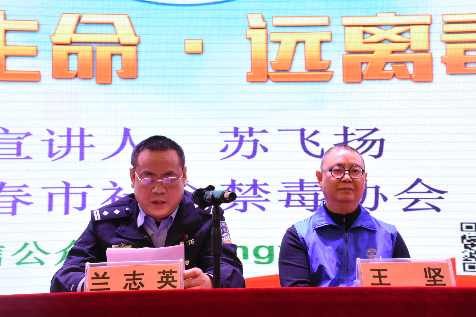 本站讯(团委梅应轩学生记者邱丰南灿田晶宇)为切实提高买球官网青年学生对毒品知识的了解和拒毒防毒的意识,积极引导青年学生远离毒品,进一步推进禁毒宣传教育的开展,12月3日下午,买球官网于科技综合楼二楼学术报告厅承办了“创城同心·禁毒同行”禁毒知识宣讲活动。市公安局禁毒支队副支队长兰志英,市社会禁毒协会会长、九三学社宜春市委专职副主委王坚出席活动,来自各二级学院的300名平安志愿者代表共同参与了此次活动,市禁毒协会讲师团负责人、宜春学院教授苏飞扬担任主讲人。本次活动由校团委组宣科科长、校学生会秘书长梅应轩主持。