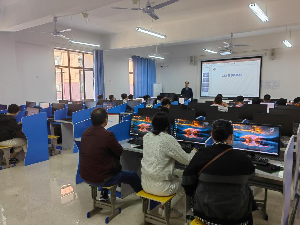 曽禹龙老师向全院展现了《Python程序设计》课程的实施过程。他以项目为背景,以任务为指导,与学生建立良好的互动交流,圆满地完成了课堂教学。