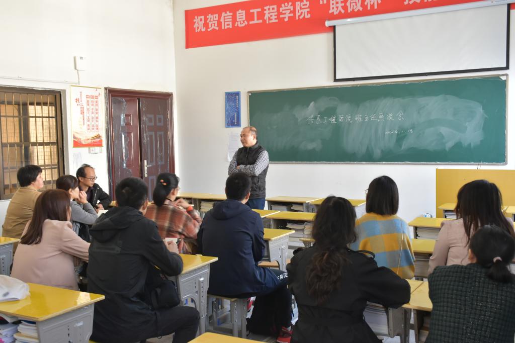 班主任工作是学校教育教学工作的灵魂,是学校德育工作的重中之重。为进一步了解信息工程学院班主任工作现状,强化班级管理,提高班主任的工作水平,11月13日上午,我院在信息楼召开班主任工作座谈会,院长王军民、党总支副书记简靖韡和各班班主任、辅导员出席会议。