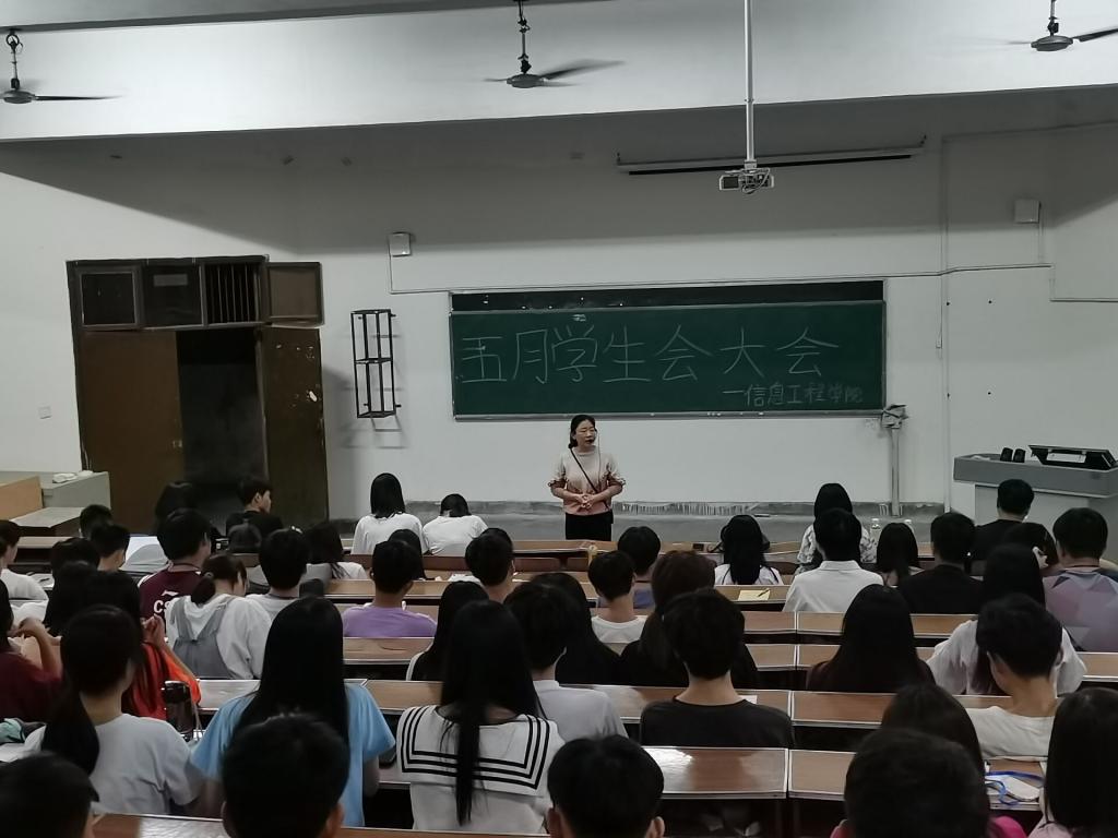 为进一步提高学生会工作人员的管理责任意识,提高工作效率,5月30日晚,信息工程学院于三楼阶梯教室召开了学生会全体工作人员大会,团总支书记温倩主持会议并作了讲话。