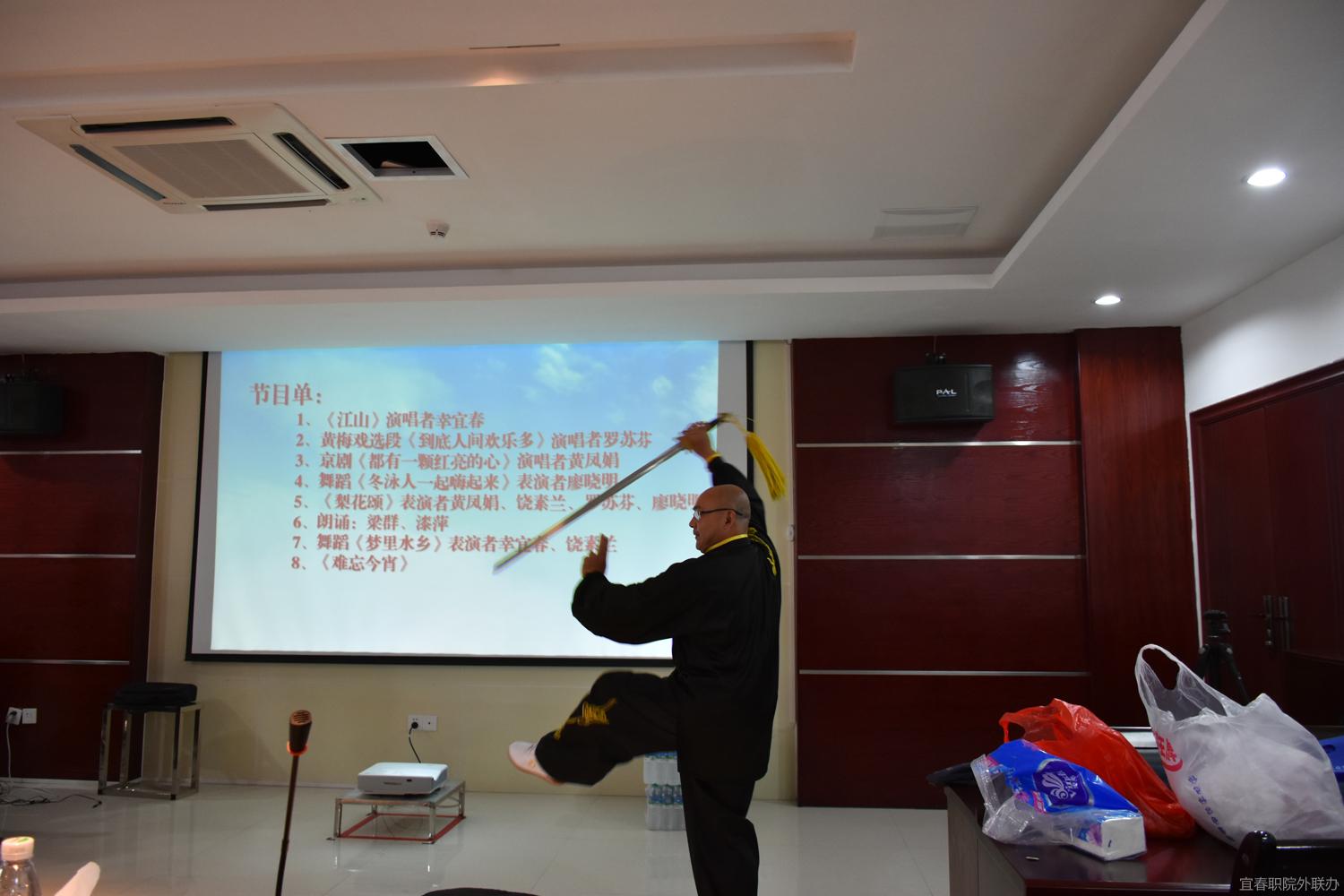 随后,校友一行来到北校区科技综合楼513会议室就坐。原班级任课教师罗陆英、俞晓园、欧阳槐、伍润生分别发言,表达了对同学们的思念之情,同时欢迎大家常回家看看。校友们也逐一发言,与大家分享各自的近况。整个会议室内气氛浓烈,其乐融融。接下来的才艺表演环节,更是将此次聚会活动推向了高潮。一套行云流水的舞剑表演、一曲韵味醇厚的说唱京剧、一首婉转动听的歌曲演唱、一支活力四射的舞蹈展示,每一个精彩纷呈的节目都凝聚着校友们的良苦用心。