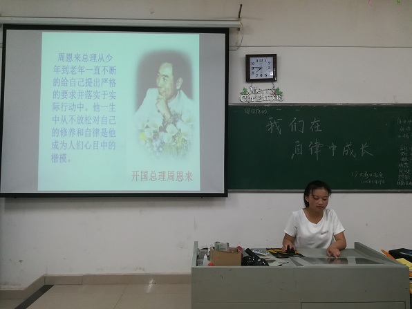 “当我们面对新的挑战,我们不能放松懈怠,而需要自律,自己约束自己。学校的常规量化考核,我们要做的最好;自修课的纪律,我们要全心维护;清洁的校园,我们要时刻爱惜;飞逝的光阴,我们要牢牢把握。”17大检1班游心田的演讲——《在自律中成长》,例数学生自律的点滴,要求同学们在课堂上,校园内,奋斗的青春中要时刻自省,不断自律,完成自我的蜕变与成长。