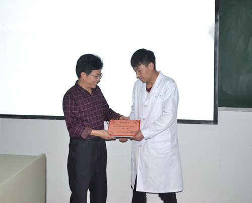 颁奖仪式上,杨云山首先对在竞赛中获得优异成绩的同学们表示了热烈祝贺,同时对老师们的辛勤劳动表示了衷心感谢。他谈到:“技能竞赛的目的非常明确。第一,竞赛能检验同学们专业知识、专业技能的掌握程度;第二,通过竞赛发现教学中的不足,能够更好地改进方法,提高质量;第三,竞赛有助于提升同学们的就业能力,使其更全面地掌握知识技能;第四,竞赛检验了教师们的教学效果,对教学工作有极大的促进作用。杨云山还鼓励同学们相互学习,相互提高,并祝愿医学院更好地将技能竞赛这项活动举办下去。