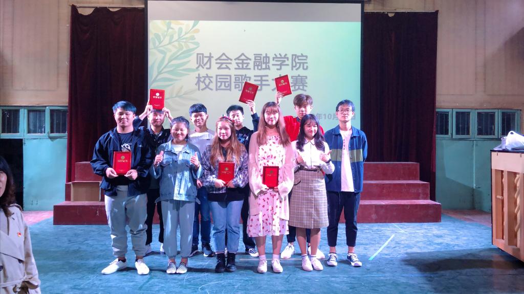 本站讯(财会金融学院 邹涛 学生记者 高阳)10月23日晚,财会金融学院于第二教学楼阶梯教室举办学院歌手大赛决赛,由副院长邓如星,党委副书记邓晶,团总支书记易扬,教研室主任江鸿旋,青年教师王钰组成华丽的评委阵容,18大注班熊晰担任活动主持。 院歌手大赛是本院的传统赛事,发掘了一个个金嗓子和表演才华的同学。本次比赛,40多名同学报名,经过紧张激烈的角逐,十组同学成功突围,进入决赛。 现场,选手们一展歌喉,或高昂、或委婉、或深情的用心演唱每一首歌,为观众们带来一场声音的盛宴。18大注班的刘成文深情演绎的《其实》,19大农金税班的卡丽优美婉转的《Love Yourself》,深受观众们喜爱,赢得现场阵阵掌声和喝彩。而易扬、颜颖和江鸿旋老师以演唱嘉宾身份倾情演唱《棋子》和《朋友》更是引爆全场,深入人心。 最终,来自19大农金税班的卡丽同学披荆斩棘,赢得本届学院歌手大赛冠军。 财会金融学院 2019年10月23日 上一条:我院代表队荣获全国税务技能大赛二等奖 下一条:财会金融学院开展团日活动