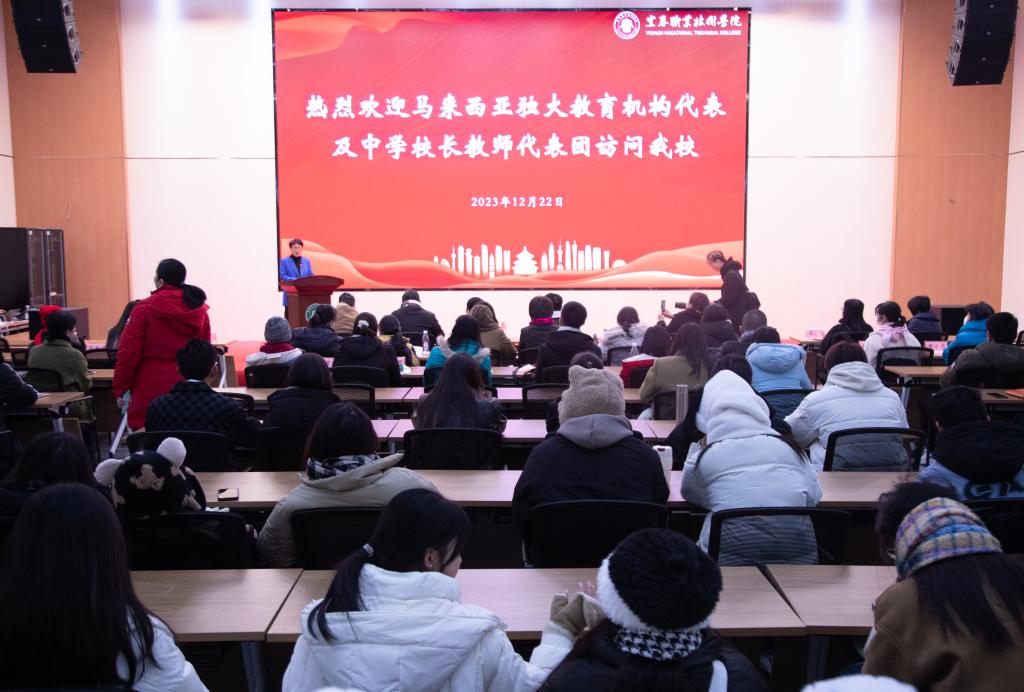 本站讯(国际合作与交流处杨慧)12月22日上午,买球官网在天工楼四楼报告厅为远道而来的马来西亚中学校长、教师参访团举办了热烈的欢迎仪式。参访团由马来西亚独大教育机构组织带领而来,共有23名成员。独大教育是马来西亚非营利性机构,一直致力于帮助马来西亚华裔争取华语教育资源,为华裔学生开拓海外升学渠道。此次参访团来到买球官网旨在了解买球官网职业教育的开展情况,以便能够为马来西亚学生带去最新且丰富的讯息,鼓励更多的学生来买球官网升学。