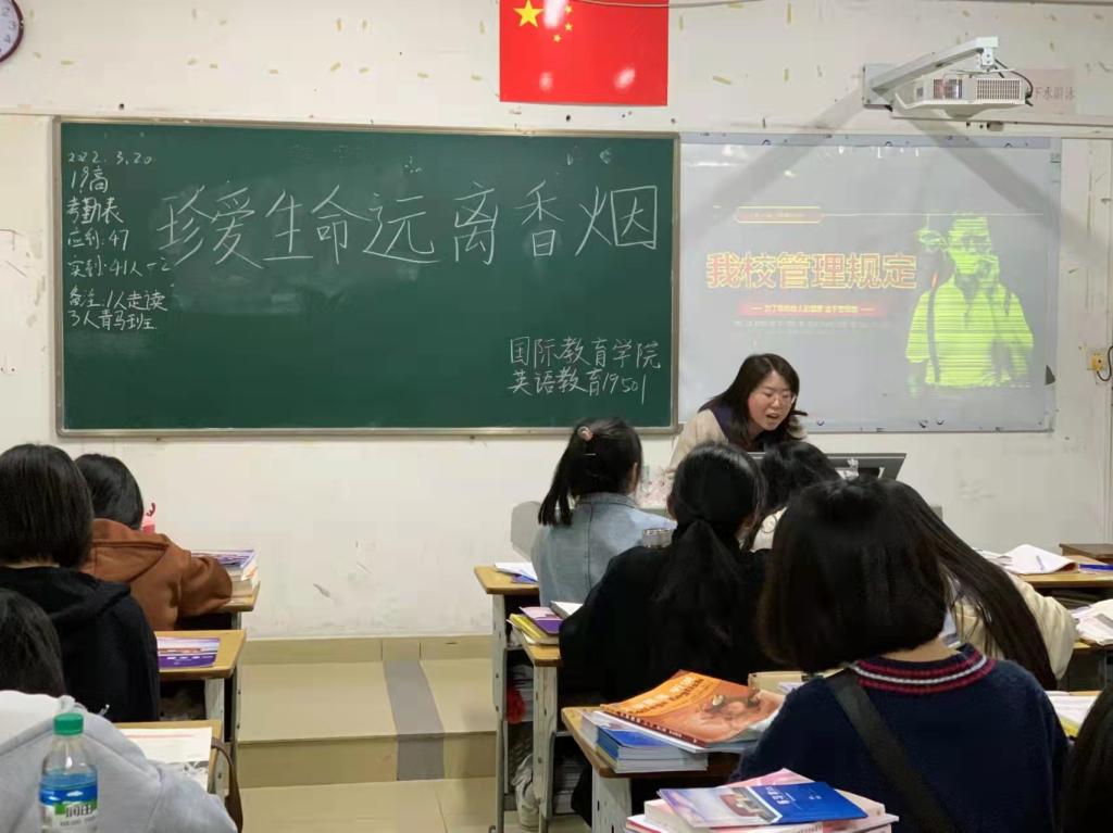 本站讯(国际教育学院 金岩)为使同学们充分认识吸烟对身体健康的危害,引导同学们积极主动地参加无烟校园的创建,国际教育学院各班级在3月20日晚上7:30,由各班辅导员、班主任主持召开了“珍爱生命,远离香烟” 的主题班会。