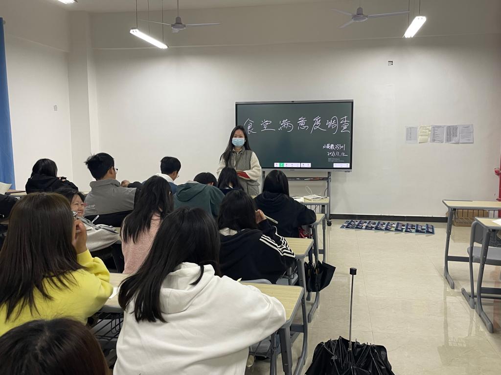 为进一步了解学生的饮食爱好,保障食堂食品质量,维护学生的消费权益,进一步打造师生满意、阳光清廉、家长放心的学校食堂,后勤产业处联合学工处开展十月份食堂满意度调查活动,11月12日,国际教育学院各班在本班组织学生开展食堂满意度调查活动的主题班会。