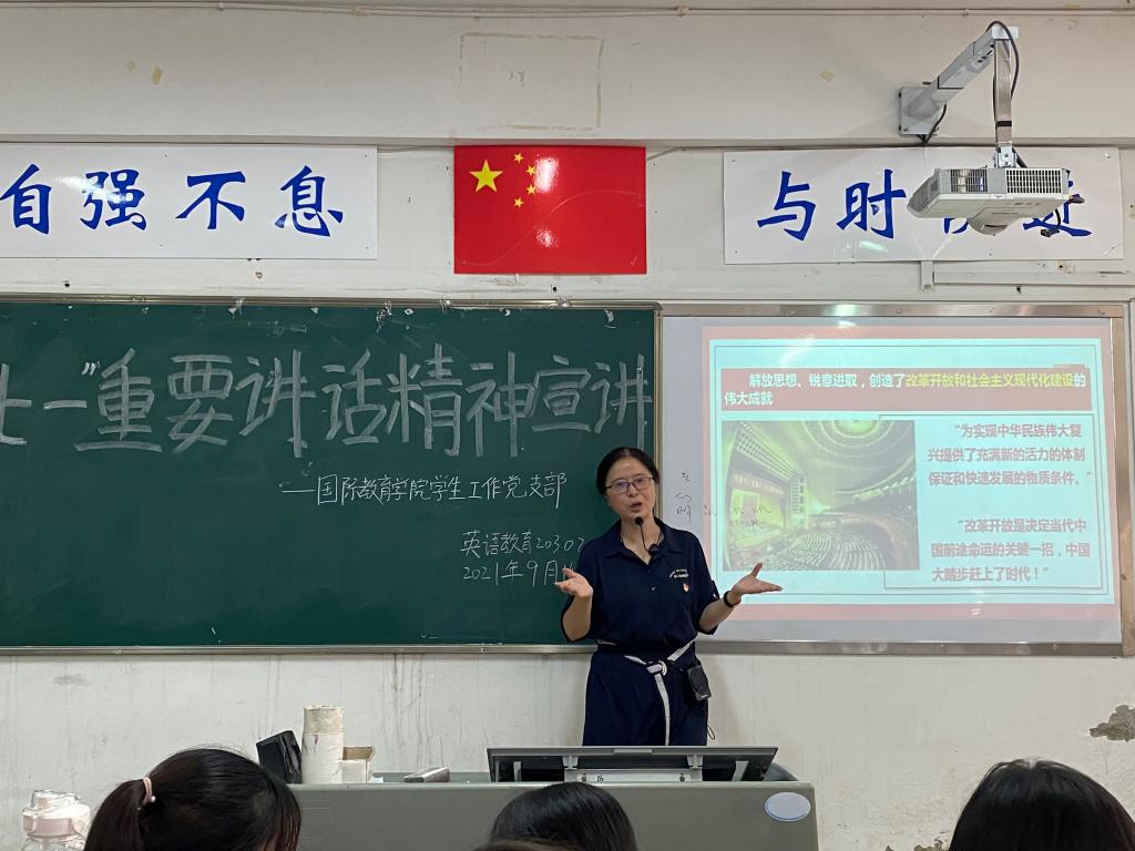 本站讯(国际教育学院 周沫利)为进一步深入学习宣传贯彻习近平总书记在庆祝中国共产党成立100周年大会上重要讲话精神,我院党总支于9月14日下午开展党员学习活动日活动,内容为“七一”重要讲话精神的专题学习和宣讲。