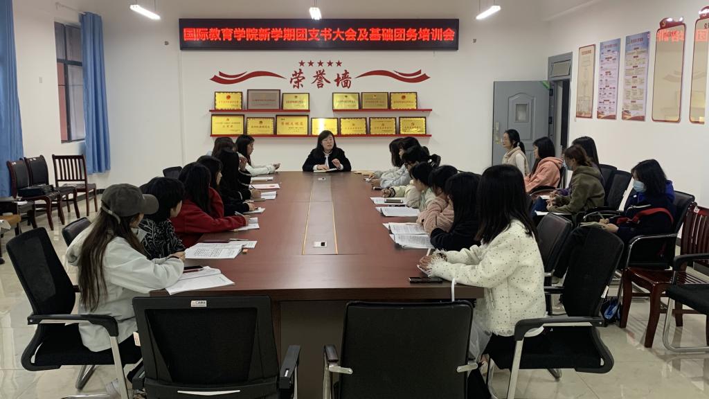 本站讯(国际教育学院 杨琨 学生记者 喻陈欣)为进一步深化高校共青团改革,扎实推进全面从严治团,落实“三比三争”活动部署,提高新时代基层团组织的组织力、引领力、服务力,国际教育学院团总支于3月20日晚6点在博达楼B502会议室召开了新学期团支书大会及基础团务培训会,会议由学院团总支书记杨琨主持,各班团支书及相关团干参会。