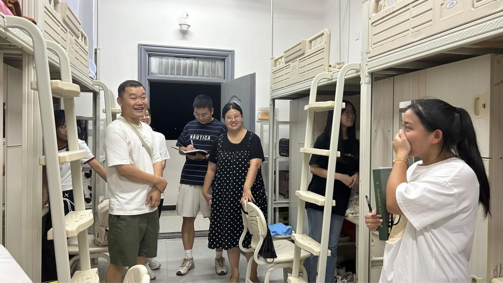 本站讯(国际教育学院 郭学琪 易梦娇)为进一步了解23级新生入学情况,切实体会新生宿舍感受,帮助新生更快适应学校,融入大学生活。2023年9月10日晚上七点,国际教育学院党总支书记刘海云、院长王玮、副院长杜欣宇、学团负责老师刘嘉妮以及全体辅导员到新生宿舍进行走访。