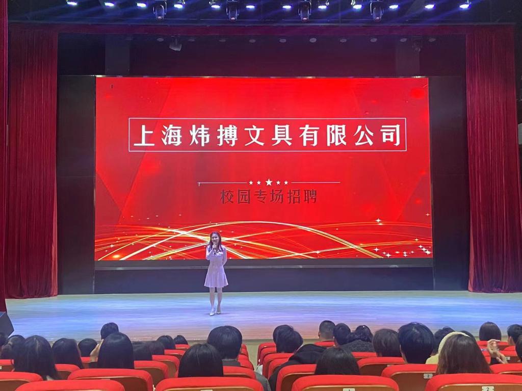 本站讯(国际教育学院 郭学琪 学生记者 周熙睿)为给毕业生提供就职渠道,架起一座学生与企业沟通的桥梁,搭建学生与企业交流的平台,国际教育学院于4月8日下午2点50分在博达楼演艺厅举办上海炜搏文具有限公司专场招聘会, 21级毕业班学生共同参加。