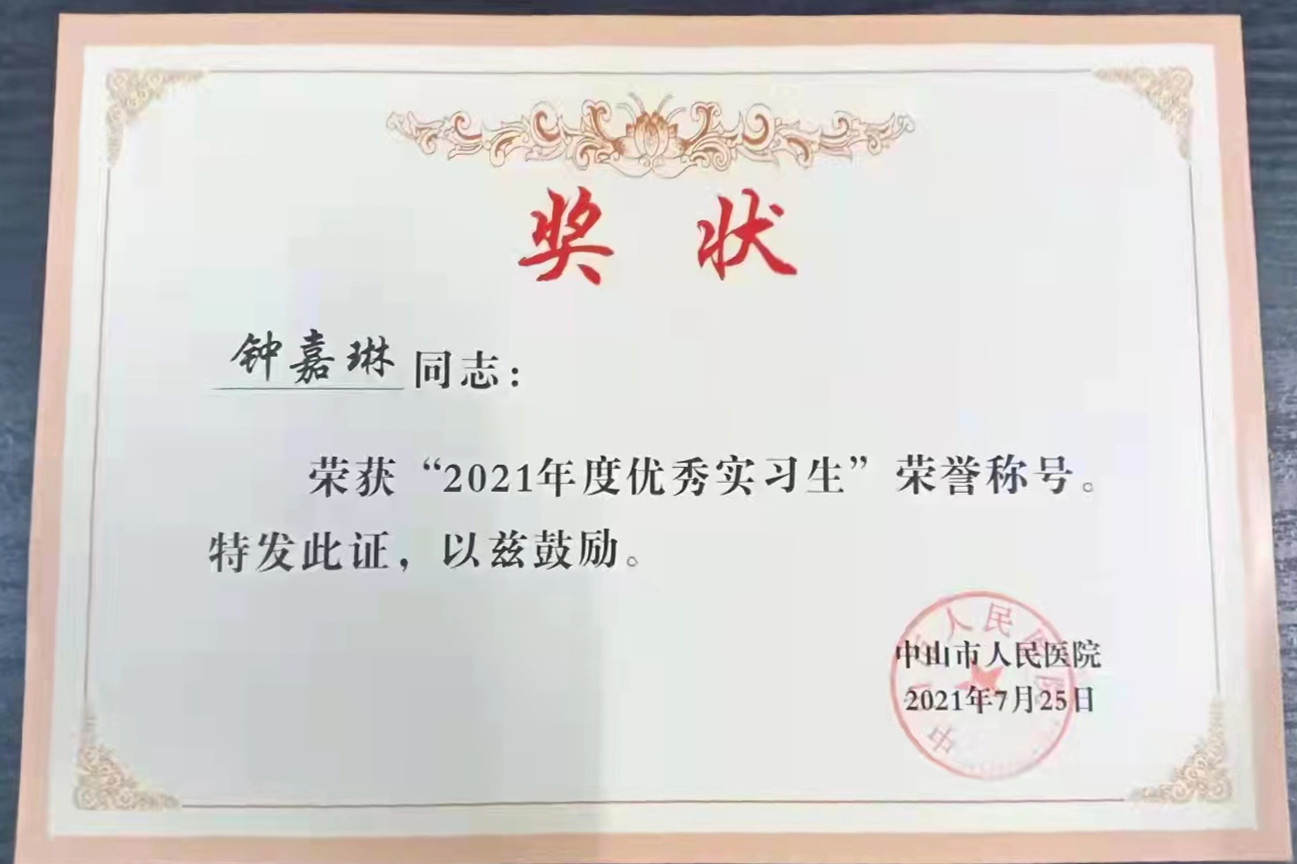 钟嘉琳,一位性格爽朗、为人大方的广东女孩,自2019年考入买球官网进入国际教育学院19大涉外护理班就读以来,在学院党总支的关心下迅速成长。在校期间认真学习专业知识、积极参与各项活动,在思想、生活、学习、工作等各方面都得到全面发展,多次获得奖学金,并于2020年荣获国家励志奖学金。目前她在广东省中山市人民医院担任实习组长,实习期间她不畏劳苦,认真工作,不计报酬,虚心向导师们请教,被实习单位评为“优秀实习生”、“先进志愿者”。