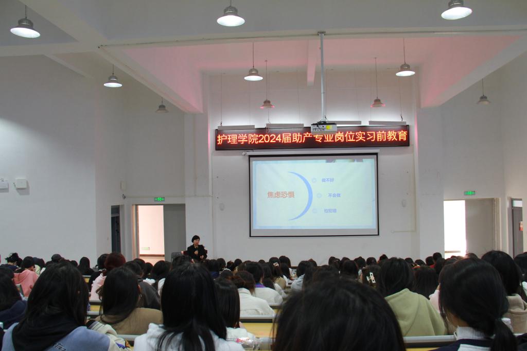 为让同学们提前了解医院环境和各项工作规范,尽快适应角色转变,3月14日,护理学院特邀宜春市妇幼保健院杨欢秀主任护师来买球官网开展助产专业岗位实习前教育。全体助产专业学生到场聆听。