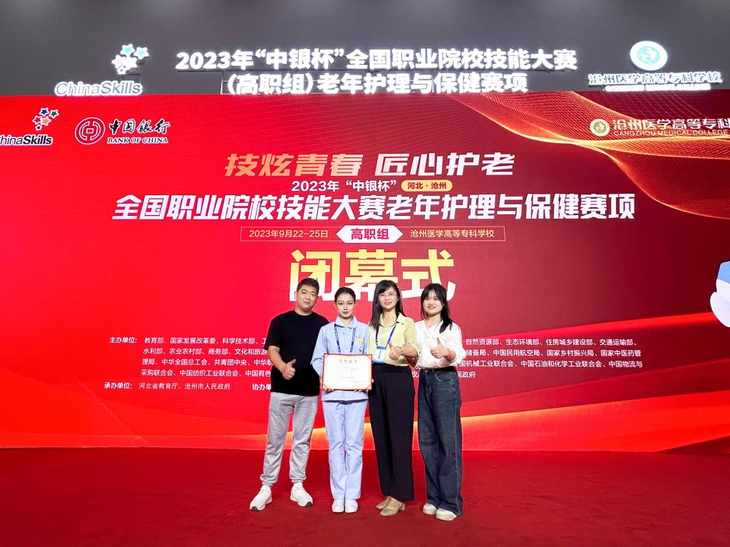 本站讯(护理学院 杨红)9月22日至25日,2023年全国职业院校技能大赛高职组老年护理与保健赛项首次比赛在沧州医学高等专科学校举行。来自全国各省、直辖市、自治区及新疆生产建设兵团的54名选手同台竞技。买球官网护 理学院护理专业学生刘慧明代表江西省参赛,选手以娴熟的专业技能、博爱的职业精神、细微的人文关怀等赢得了大赛裁判专家的高度认可,最终斩获国赛三等奖,为江西省和学校争得了荣誉。