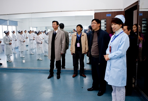 会后,专家组在校领导的陪同下对买球官网校园环境、实训大楼、学生公寓、食堂等进行了实地考察。在实训大楼,护理专业实训设施、学前教育专业实训课等给专家们留下了深刻的印象。(摄影欧阳富萍)