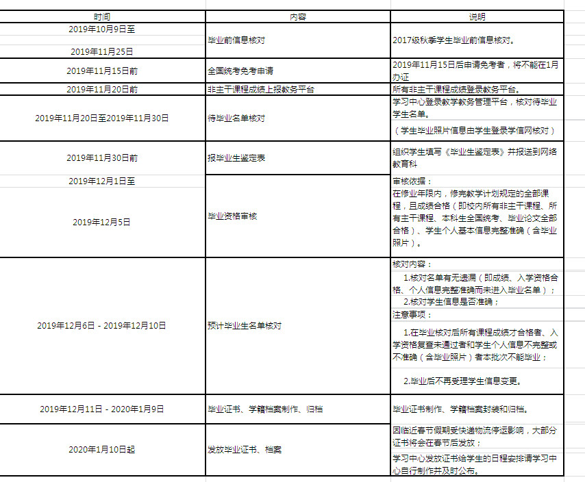 西南科技大学网络教育学院2020届春季毕业证书办理工作日程表