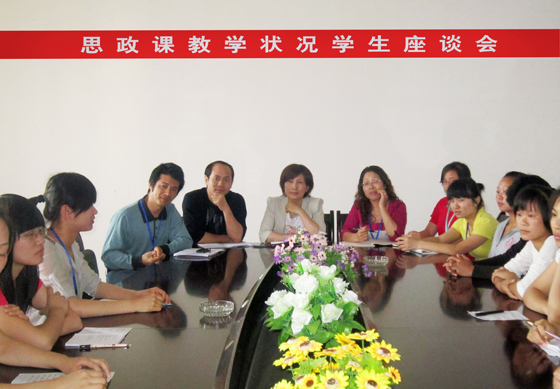本站讯(思政部 张正芳)2011年5月17日下午,思政部在实训大楼七楼会议室召开思政课教学状况学生座谈会。会议由部门主任杨莉主持,部门教学干事、教研室主任及来自各系(院)的30多名学生代表参加了座谈。