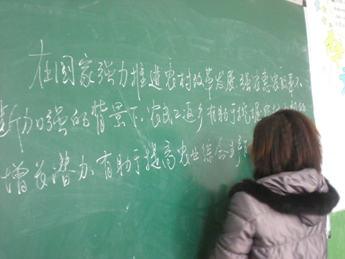 本站讯(思政部李霞)为进一步提高教师们的业务水平和专业技能,3月10下午,思政部组织全体专兼职教师参加了部门粉笔字比赛。参加活动的教师按照所抽取的号码依次就指定内容进行板书。评委们从书写美观、字体间架结构、整体布局合理、书写规范性等几个方面对参赛者的书写作品进行严格评审。经过评比,最后推选出邓伟蓉、钱爱文等7位老师参加学院组织的青年教师粉笔字比赛。
