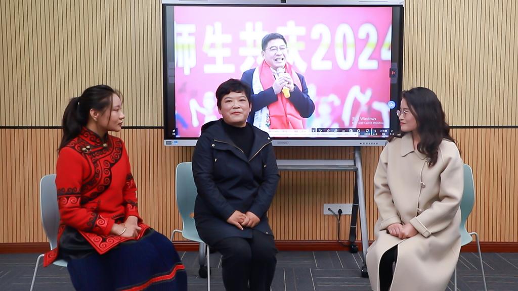 在讲授“长远之治:推动新时代民族团结进步教育高质量发展”部分时,对谢海英老师进行访谈。在同学们的期待中,谢海英为大家分享了学校民族团结进步教育的故事,鼓励同学们要做民族团结进步的参与者、奉献者,以实际行动推动中华民族团结进步事业的发展。
