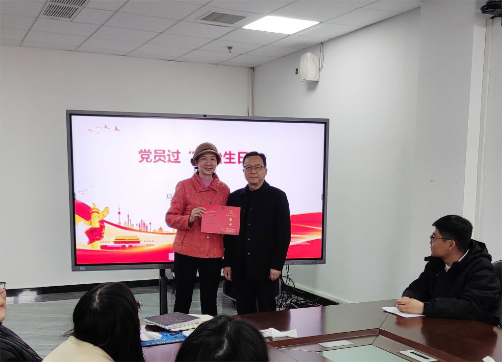 党员“政治生日”活动上,支部书记黄继斌代表党支部为罗珊同志赠送“政治生日”贺卡。他寄语党员教师,要不忘初心、牢记使命,进一步强作风、走前列、作表率。罗珊分享了生日感言,回忆入党历程、讲述入党初心,并表明了奋斗信心。