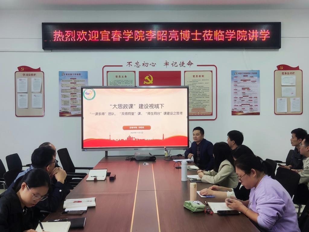 本站讯(马克思主义学院 陈牡丹)为进一步了解和落实本省“大思政课”综合改革试验区改革项目的申报工作,11月1日下午,马克思主义学院邀请宜春学院李昭亮博士在日新楼C402开展专题辅导讲座,讲座由院长钱爱文主持,全体思政课教师参会。