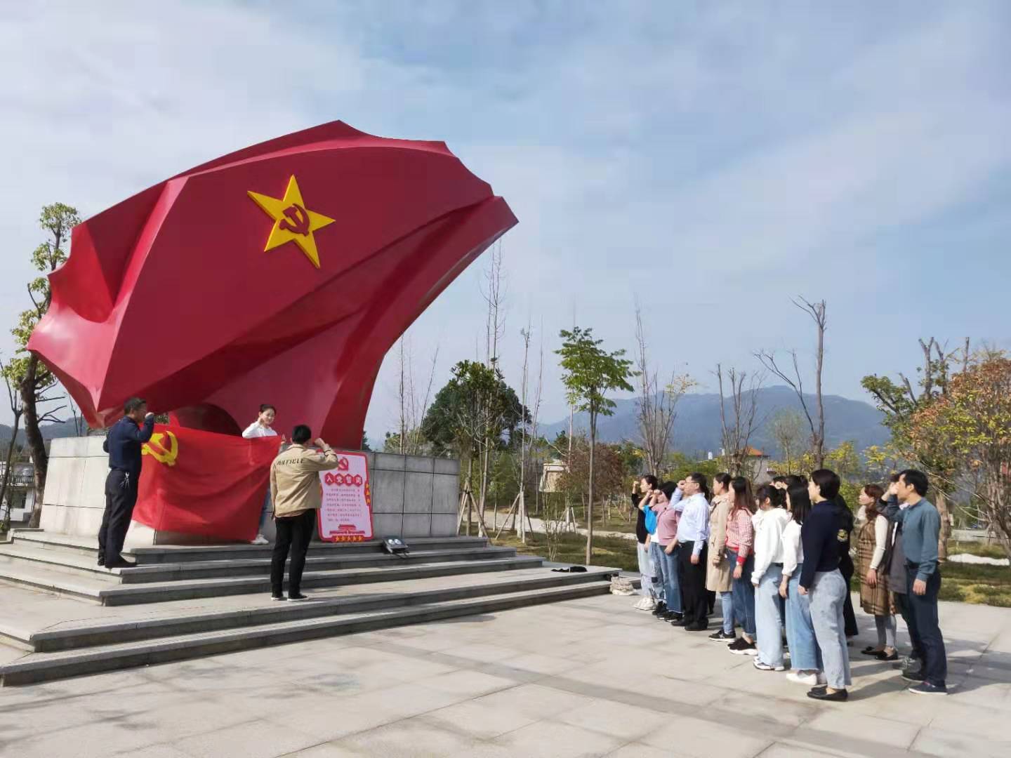 在师范学院院长雷水龙的带领下,党员们向革命烈士敬献花篮、鞠躬默哀,在鲜红的党旗前重温了入党誓词。