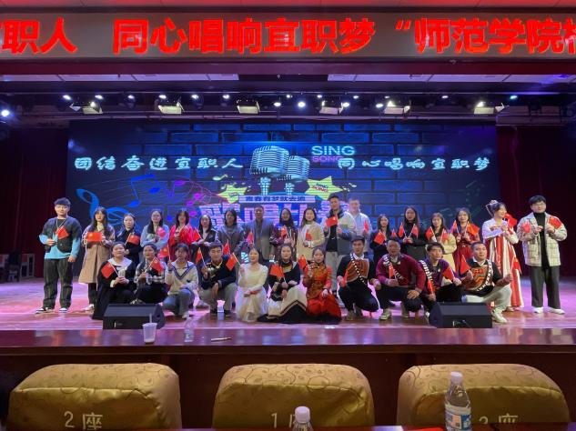 本站讯(师范学院 霍文杰 学生记者 彭舒颖)唱响青春旋律,传承百年党史。为繁荣校园文化生活,加强学生的精神文明建设,彰显买球官网民族团结一家亲的校园氛围,促进买球官网艺术教育发展,提升我院学子综合素质,师范学院于12月3日19:00-21:00在校本部科技综合楼二楼多功能报告厅举办“团结奋进宜职人·同心唱响宜职梦”师范学院校园歌手大赛。出席此次大赛的评委老师有师范学院党总支副书记饶丽老师,声乐专业副教授辛咏老师,音乐教研室主任胡忻忻老师,师范学院团总支书记杨文姝老师,师范学院辅导员霍文杰老师。