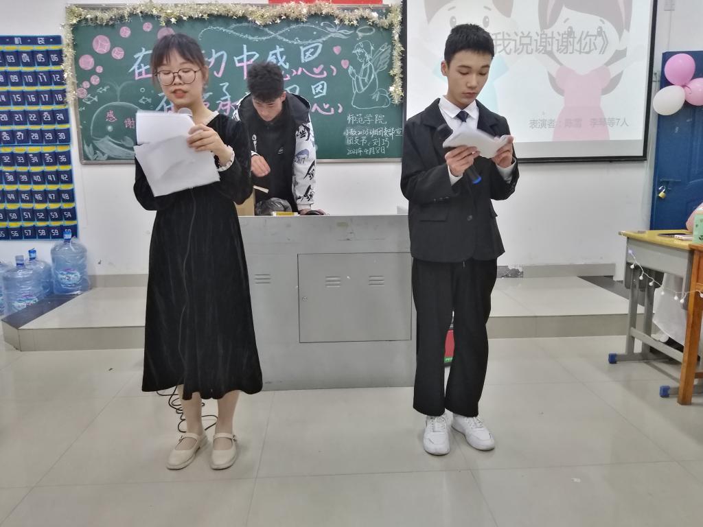 活动伊始,小学教育20502班的合唱歌曲《保卫黄河》拉开了本次示范性团日活动的序幕,同学们气势磅礴的歌声完美演绎出中华民族奋勇抗战、团结拼搏的不屈精神。随后,小学教育20313班的同学表演了自创手势舞《听我说谢谢你》,他们用指尖的灵活舞动出青春的韵律。然后,小学教育20313班的同学带来了小品《孔融让梨》,意味深长的台词让现场观众对本次团日活动的内涵有了深刻的理解。最后,小学教育20502全体同学合唱《歌唱祖国》,响亮的歌声唱出了新时代青年人对伟大祖国和中国共产党的热爱与感恩。