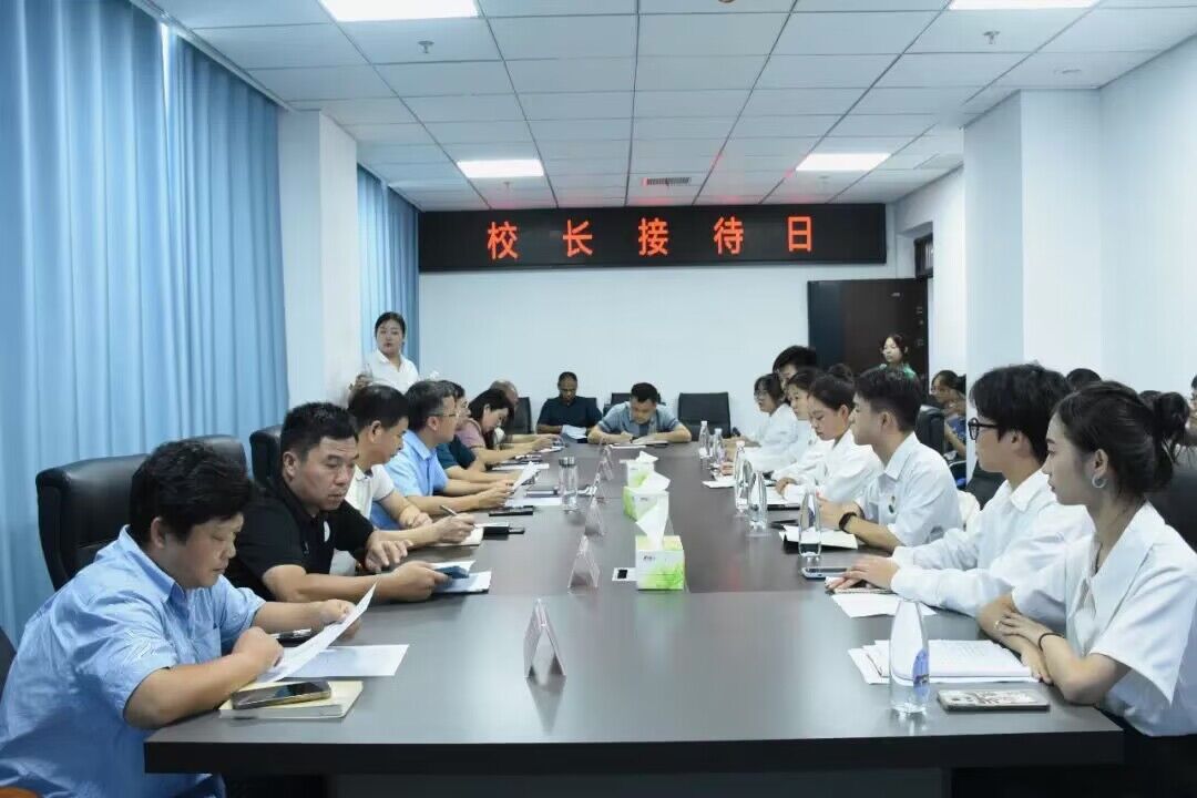 本站讯(团委 梅应轩 杨雨 施旸 学生记者 邓文燕 南灿)温情办教育,倾心育桃李。为搭建师生双向交流平台,提高学校管理与服务水平,积极营造“倾听学生心声,关心学生成长,促进学校发展”的校园良好氛围,9月27日下午,买球官网于校本部天工楼A708会议室开展本学期第一次“校长接待日”活动,党委副书记、校长邱军与来自各二级学院13名学生代表进行面对面交谈,党政办、学工处、教务处、后勤处、保卫处、图书馆以及校团委等部门负责人参与此次活动。各二级学院学生代表就勤工俭学、思想政治教育活动、助学金、垃圾投放、硬件设备、校园绿化等问题与相关部门负责人积极互动、建言献策,并表示将提出解决方案,采取具体措施,不断完善与监督各项指标,及时给予同学们确切反馈,全力保障广大师生校园学习生活。邱军对同学们积极参与学校管理的主动性与高涨热情表示肯定,并提出三点要求,一是“明确部门岗位职责,实行存留问题通报机制”;二是“主动倾听学生诉求,及时解决群众性问题”;三是“发挥带头作用,营造良好沟通氛围”。并希望师生加强交流合作,始终坚持开展“校长接待日”活动,为学校建设全省“双高”院校贡献力量。