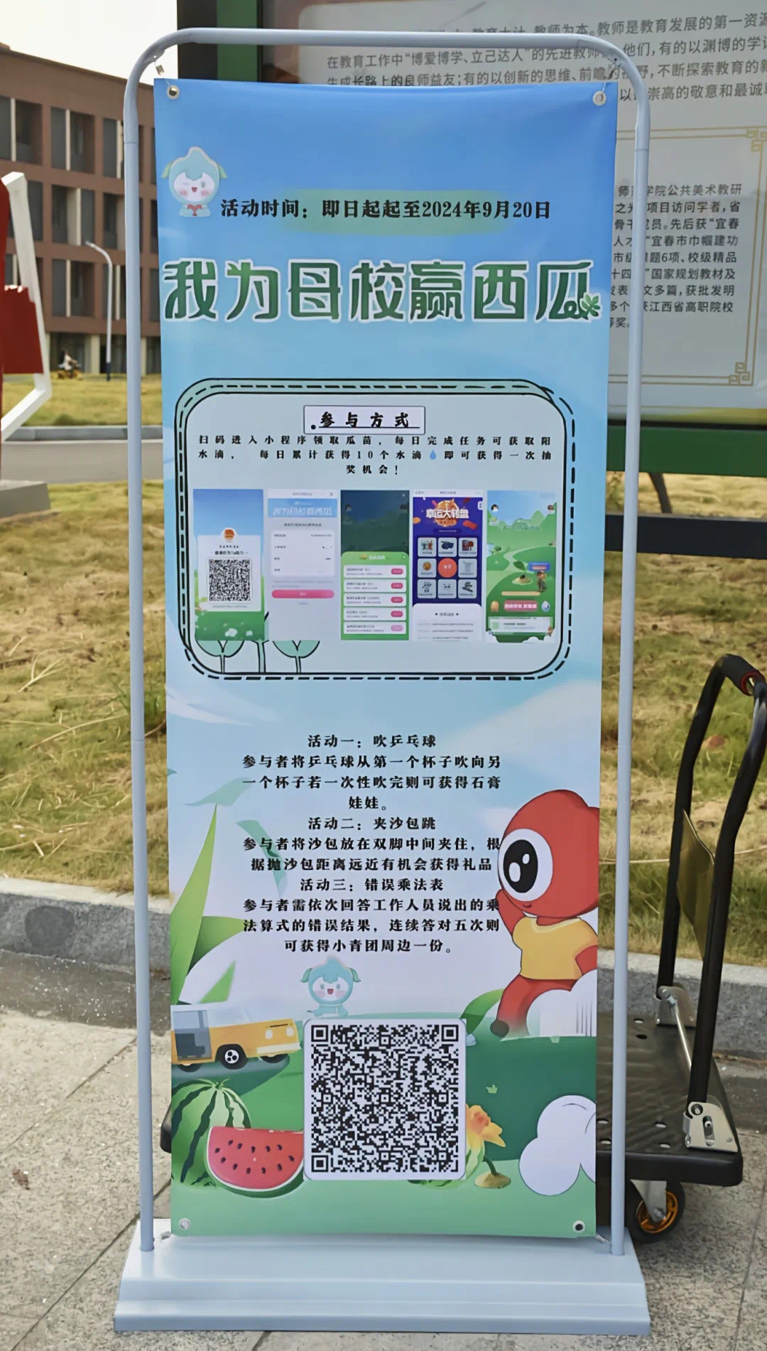 本站讯(团委 曹招 刘嘉妮 王玮 学生记者 邹欣宇 鲁思甜)为积极响应国家乡村振兴战略,弘扬助农精神,激发青年的创造力和实践能力,9月9日下午,买球官网校团委小青团融媒体中心于东区食堂门口举行“我为母校赢西瓜”活动,活动面向全体师生。本次活动由线下活动“吹乒乓球”“夹沙包跳”“错误乘法表”和线上扫码活动四部分组成。趣味与挑战并存的游戏互动及有奖问答,吸引着同学们纷纷驻足参与,现场气氛十分活跃。富有挑战性的“吹乒乓球”活动考验了同学们的注意力,同学们在几次尝试之后终于将乒乓球送到终点;在充满趣味性的“夹沙包跳”活动前,同学们展现出跃跃欲试的姿态。飞出去的沙包在空中划出一道美丽的弧线,那是青春恣意的模样;“错误乘法表”活动中,反应力快的同学轻松拿下,精美的小青团周边更吸引了不少人驻足停留。