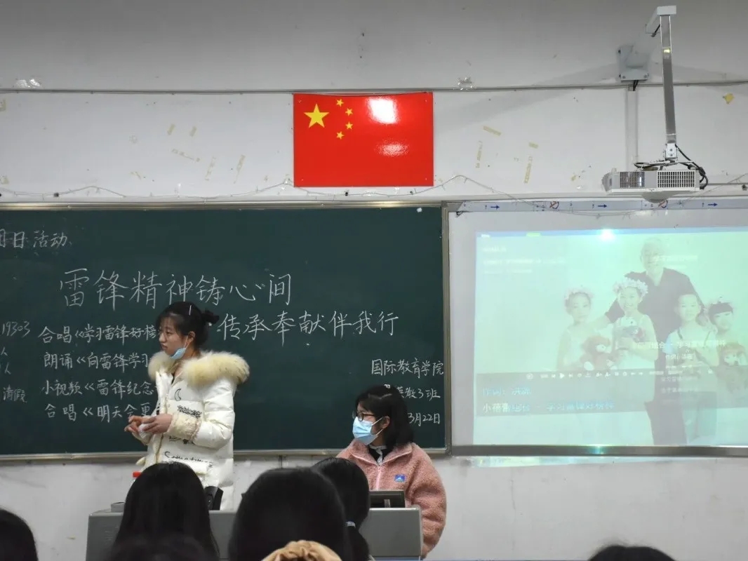 此外,各班级团支部也通过视频欣赏、自由讨论、知识竞答等方式参与到活动中去,积极歌颂、赞美雷锋志愿精神。师范学院学前20501班对红色雷锋精神进行传承与创新,以优美的舞姿和诗歌朗诵《灯火里的中国》表露他们对祖国的浓厚情意,生动诠释了“哪里有需要,哪里就有由奉献渲染的‘志愿红’”精神,荣获本次活动第三名。“我要牢记这样的话:永远愉快地多给别人,少从别人那里拿取……”,国际教育学院的19高英教的同学们声情并茂地朗读诗歌《致雷锋》,以饱满的热情赞颂了雷锋同志刻苦学习、奉献他人的无私精神,荣获本次活动第二名。财会金融学院19高会1班则作为本次示范性主题团日活动班级荣获第一名。