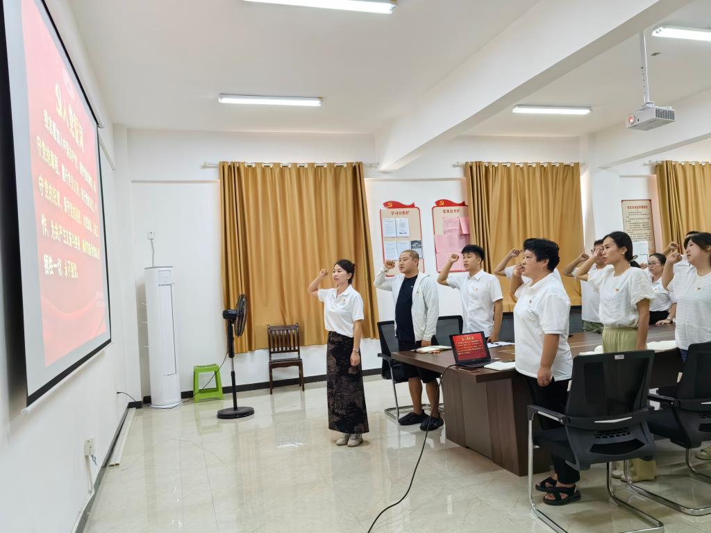 在庄严的党旗下,全体党员肃立,由支部宣传委员杨文姝领誓,共同重温入党誓词。铿锵有力的誓言回荡在会场,每一句誓词都是对党的忠诚承诺,对人民的深情告白。