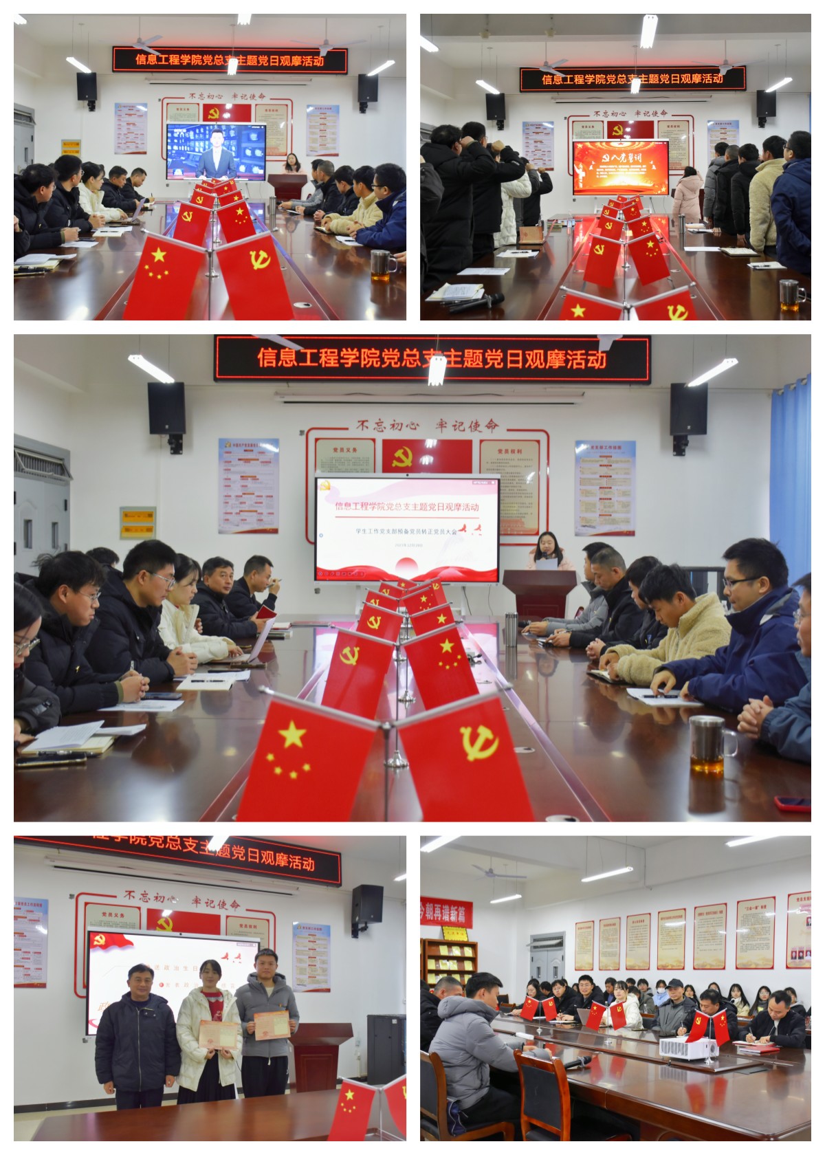 本站讯(信息工程学院 易文意 学生记者 闻舒鹏)为深入学习贯彻党的二十大精神,扎实推进学习贯彻习近平新时代中国特色社会主义思想走深走实,推动党建工作提质增效,12月19日下午,信息工程学院党总支在智云楼B501党员活动室开展主题党日观摩活动,党委委员、组织部部长韩海荣及学校各基层党组织代表到场观摩指导,活动由学生工作党支部书记易文意主持。