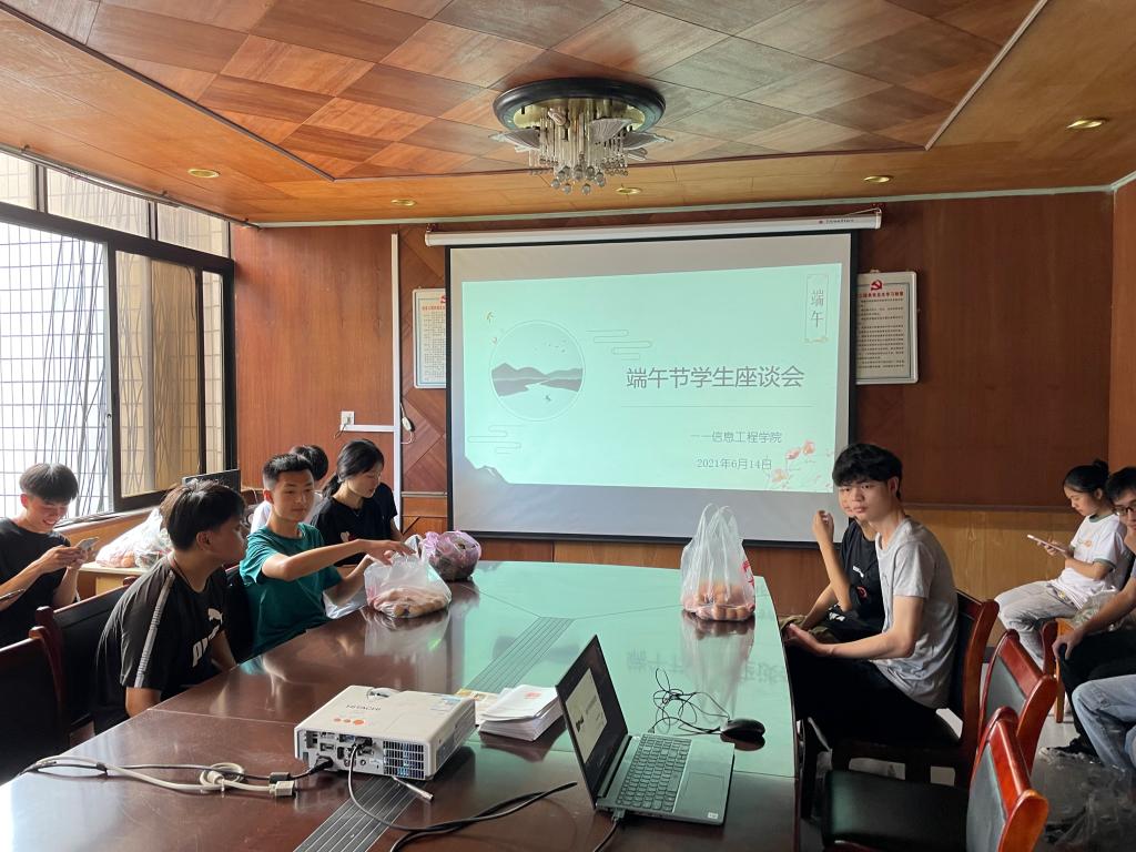 本站讯(信息工程学院 仇腾句)粽叶飘香,温情常在。6月14日上午,信息工程学院召开了我院端午节留校生座谈会,为他们送去节日的祝福,让他们感受到学院的温暖与关怀,活动由我院党总支副书记简靖韡主持,院长王军民出席。