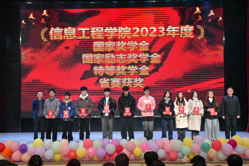 本站讯(信息工程学院 黄彪)星光璀璨,梦想启航。12月30日晚,信息工程学院在博达楼演艺厅举办“数字出彩,逐梦青春”2025年迎新晚会暨表彰大会。校纪委书记刘平涯,信息工程学院党总支书记罗来曦,校团委书记王玮,信息工程学院院长简靖韡、副院长陈根金及学院师生代表欢聚一堂,共享精彩纷呈的视听盛会。