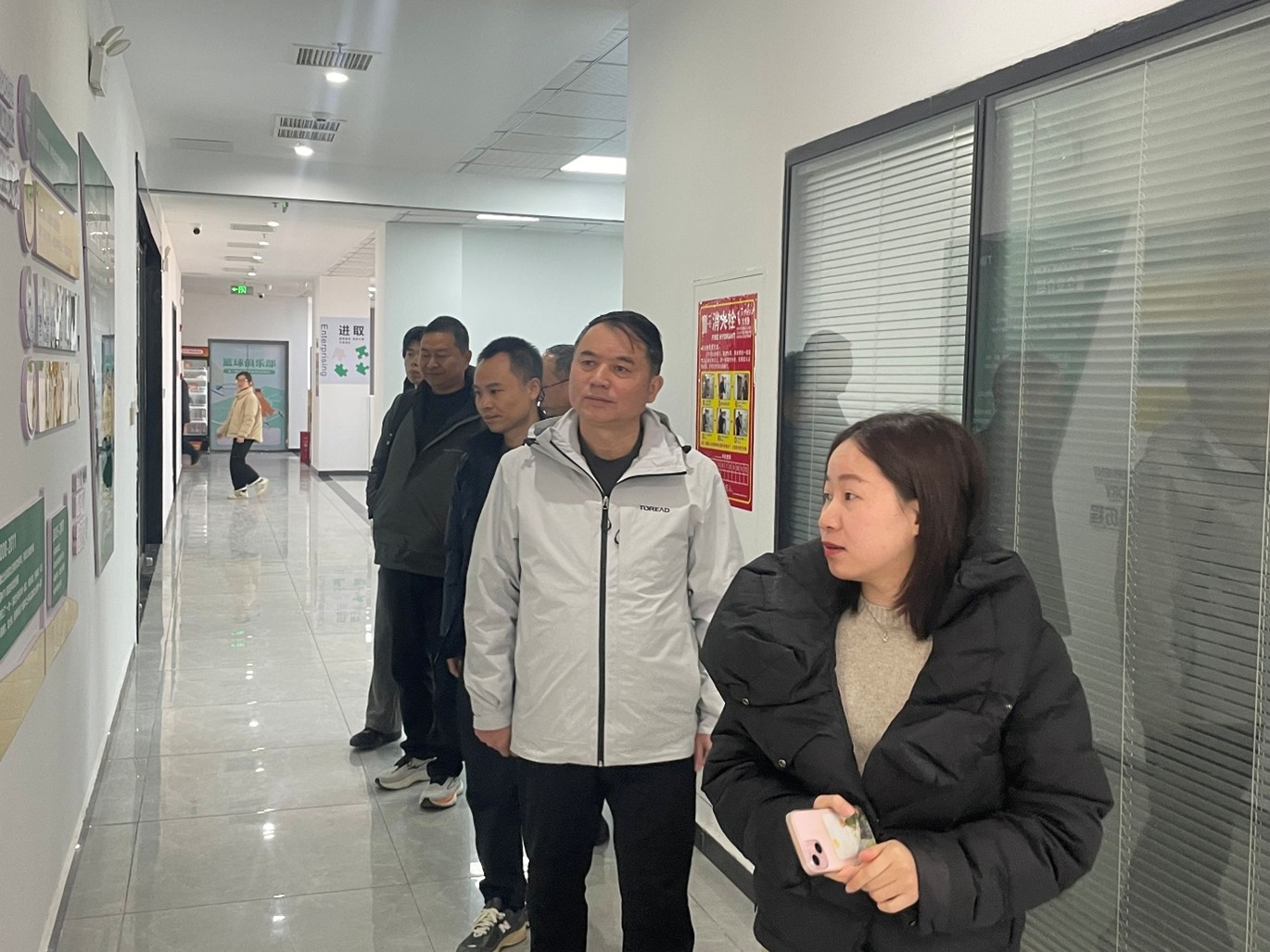 访问期间,刘平涯一行来到江西天珑通讯科技有限公司进行参观考察,与学院实习生亲切交流,详细了解他们的实习和生活情况,听取公司有关讲解介绍,双方就进一步加强校企合作、实现产学研及教育培训深度融合、带动高质量就业等内容进行深入交流。