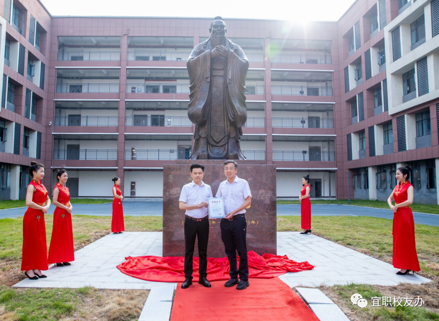 首先,校长邱军与李晖共同为孔子铜像揭幕,并为李晖颁发了捐赠证书。铜像坐落在新校区正心楼中心,象征着至圣先师可以每天看着学子们学习生活,这对学子们精神上也是一种鼓励。希望能够将其深刻的思想精髓、高远的价值取向灌注到学子的心中。