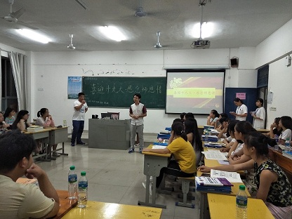 “即将召开的党的十九大,是在全面建成小康社会决胜阶段、中国特色社会主义发展关键时期召开的一次十分重要的大会,事关党和国家事业继往开来,事关中国特色社会主义前途命运,事关最广大人民根本利益……”活动前期,同学们通过观看PPT,视频,学习习总书记讲话精神,领会即将来临的中共十九大的重要内涵和意义。“不忘初心,砥砺前行。我们要勤奋学习,提高本领,筑牢成长之基,努力成为祖国的栋梁之才。”在习总书记掷地有声的讲话中,16大影3班的黄欢同学深刻感受到了作为一名新时代的青年学子身上的家国使命。