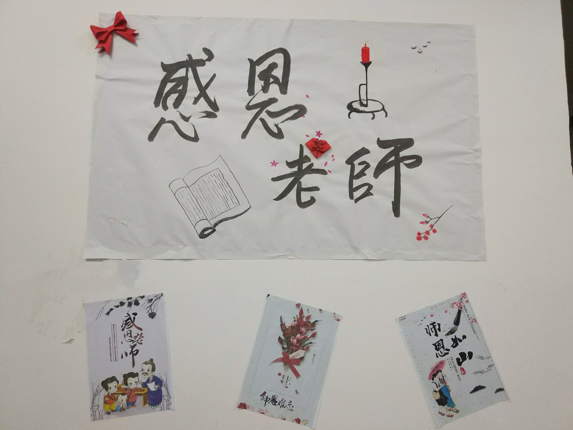 桃李满天下,师恩似海深。16大检5班的后墙上,鲜艳的桃花竞相开放,旺盛的生命力于枝头喷薄而出。一支红烛,半盏沧桑。在16大药2班以“感恩老师”为主题的毛笔画中,红烛摇曳,燃烧着自己,照亮别人。16大影3班的同学们手折千纸鹤,自绘感恩墙,用纸鹤作框,将写有心语的彩纸张贴其中,表达着对老师的深厚情谊。